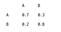 마르코프 과정은 종종 행렬로 묘사 되고는 한다. 예를 들어 상태 A와 B 사이에서 출렁이는 시스템이 있다고 가정해 보자. 두 상태 모두 다른 시간 단계에서 통계적으로 다른 상태로 바꾸는 것보다는 현 상태를 유지할 가능성이 높다고 가정하자. 그러면 이런 시스템은 다음과 같은 행렬로 묘사 할 수 있다.